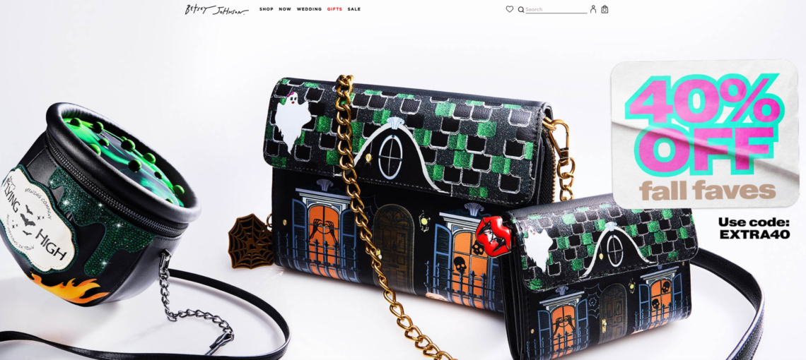 Betsey Johnson® Official Site Betsey’s Spooky Styles — Shop Betsey Johnson’s Fall New Arrivals Full of Sparkle and Personality. Step into spooky season with sparkly, statement-ready Halloween looks from Betsey. One-Of-A-Kind Designs. Shop Best Selling Styles. New Arrivals Added. Apparel, Shoes & Jewelry.
